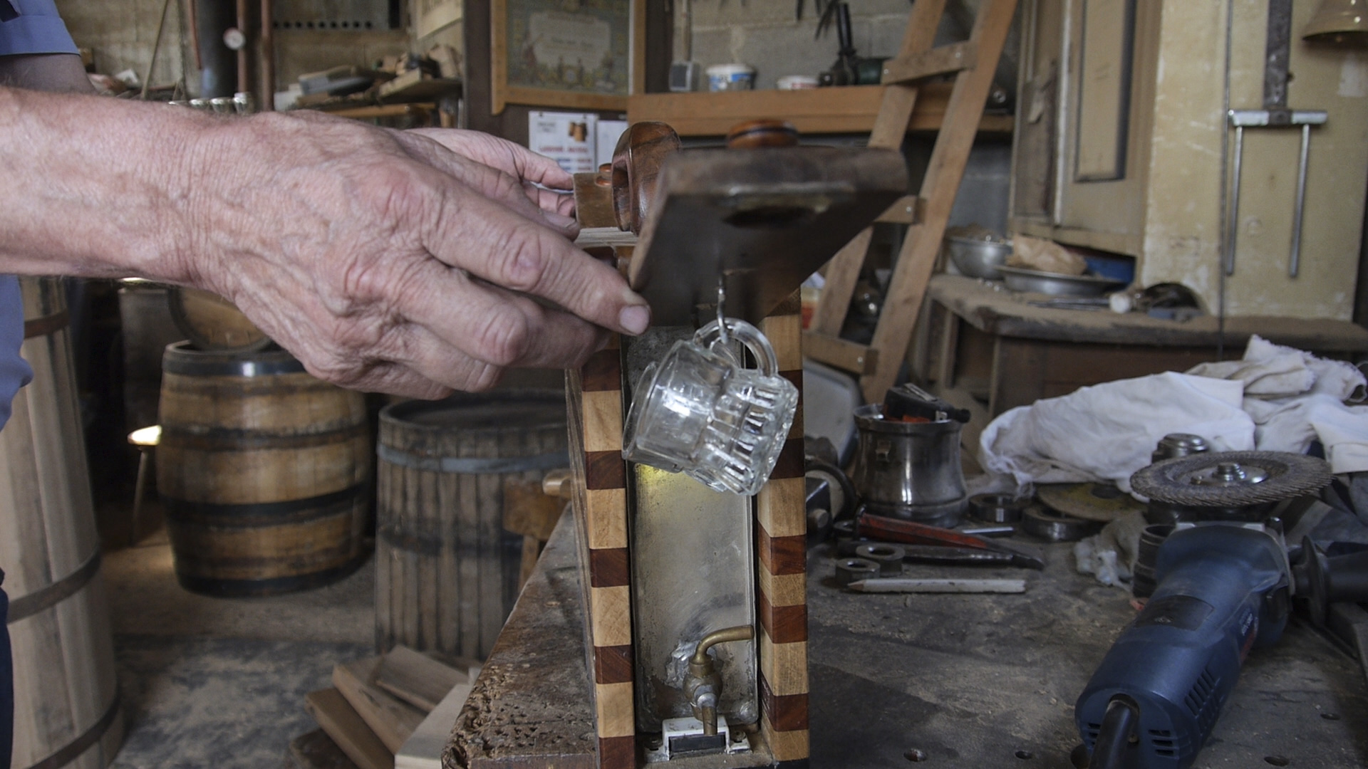 Donosimo fotoreportažu iz Stevine radionice u kojoj pravi bačve, ali i čuturice, čepove, kućice za ptice… Ponosan je na svoje zanatsko koferče u kojem se nalazi mali kazan za rakiju i čašice.