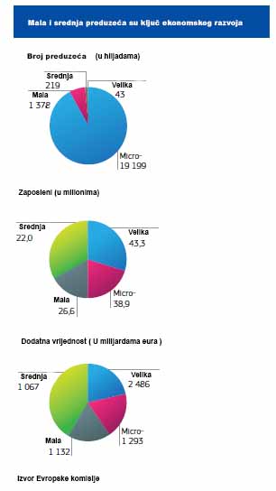 Sektor malih i srednjih preduzeća i zanata okuplja 23 miliona preduzeća, koja zapošljavaju više od 80 miliona ljudi i imaju promet od 17.000 milijardi eura.