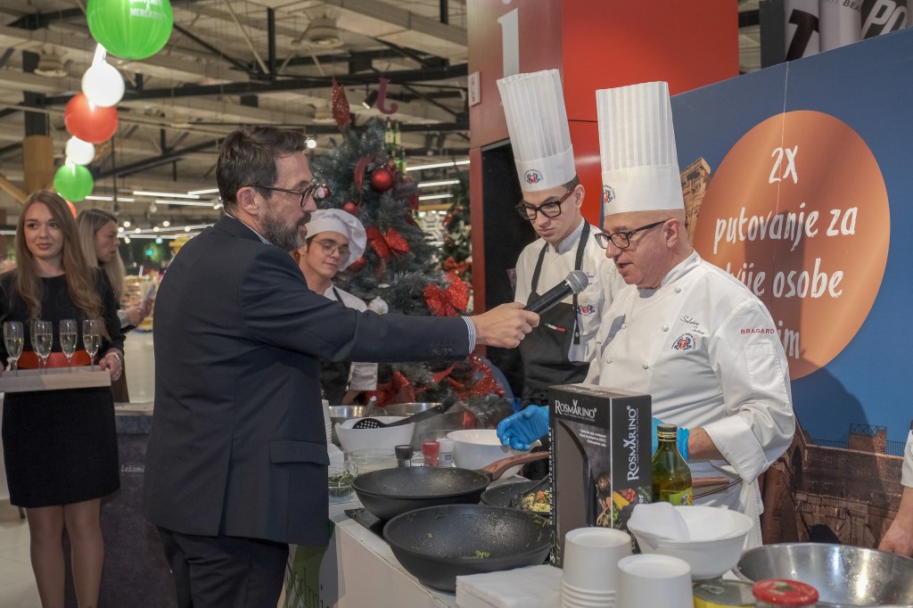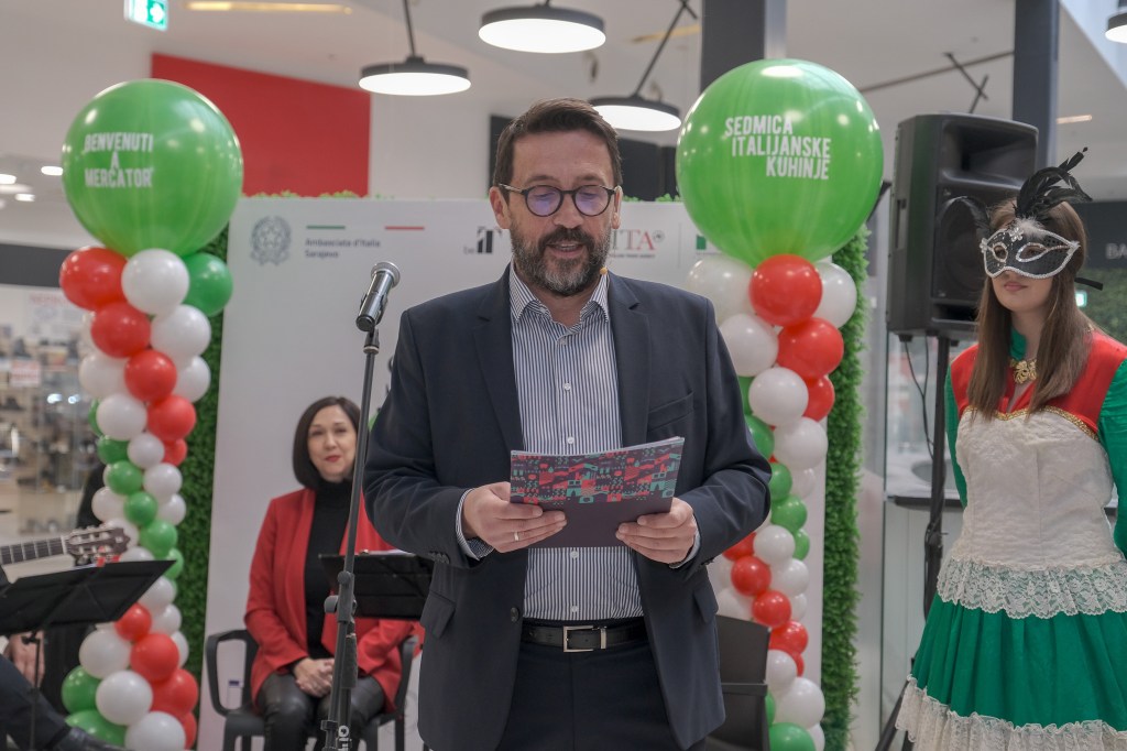 “Zadovoljstvo mi je da se naše partnerstvo sa Ambasadom Italije nastavlja i ove godine, te da smo imali čast danas ugostiti NJE.E. Marco Di Ruzza, italijanskog ambasadora u BiH. Vjerujem da smo zahvaljujući visokim standardima brenda Mercator uspjeli kroz ovaj projekat adekvatno prezentirati najbolje što nudi tradicionalna italijanska kuhinja, te sam siguran da je današnji događaj ponudio svim posjetiteljima zanimljiv susret sa segmentima italijanske kulture i tradicije u kojima smo svi zajedno uživali. “ – izjavio je Haris Arnautović, rukovoditelj Službe marketing Mercatora.