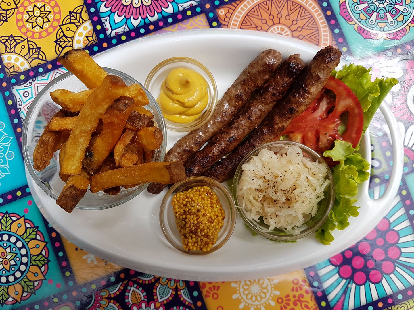Goveđe kobasice (ljute i neljute) koje mi punimo i spremamo po vašoj želji, sa pomfritom i kiselim kupusom ili sa krompir pireom prelivenim sosom od crnog vina. Published by darkoudovicic Pregledaj sve članke od darkoudovicic